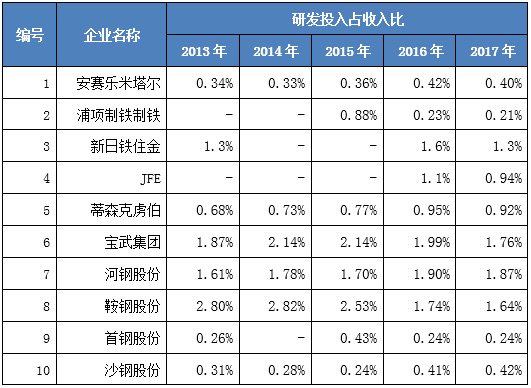 图表7 世界钢铁企业研发投入强度比较