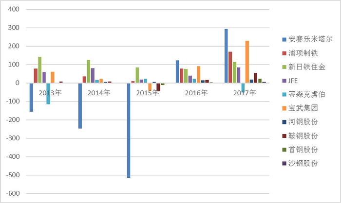 图表3 世界钢铁企业净利润比较(单位:亿元)