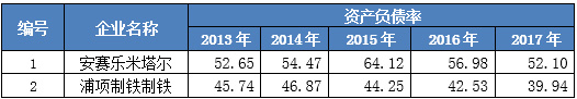 图表5 世界钢铁企业资产负债率比较