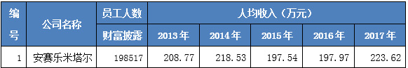 图表6 世界钢铁企业人均销售收入比较