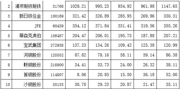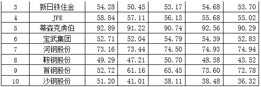 从综合指标分析看,宝武集团已迈入世界一流大型钢铁企业集团行列,其他企业在发展质量上与新日铁住金、浦项制铁等还有差距。[注:我们选取了宝武集团、河钢股份、沙钢股份、首钢股份、鞍钢股份五家中国世界五百强企业(世界粗钢产量前十),与安赛乐米塔尔(卢)、浦项制铁制铁(韩)、新日铁住金(日)、JFE(日)、蒂森克虏伯(德)五家世界钢铁巨头等进行比较。]