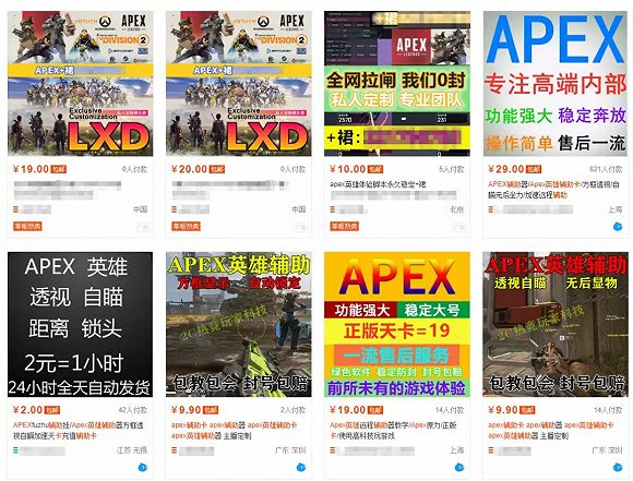 因此,本地外挂的编写难度并不高。不管怎么给本地游戏文件加密,总会有人拿着更加“暴力”的计算工具将其破解。当然,这类外挂的售价也不高,以《APEX英雄》为例,在某宝上一般是10元/天。