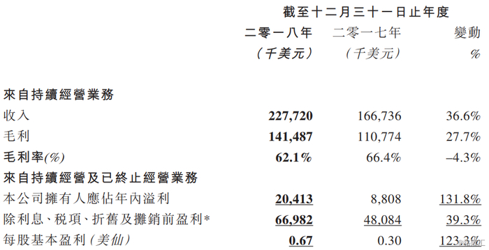 2018年3月27日,乐游科技控股(以下简称“乐游”)发布了2018全年的业绩公告。根据公告,乐游2018年来自持续经营业务收入2.28亿美元,同比增长36.6%,公司拥有人应占年内溢利2,041.3万美元,同比增长131.8% ,每股基本盈利0.67美仙。
