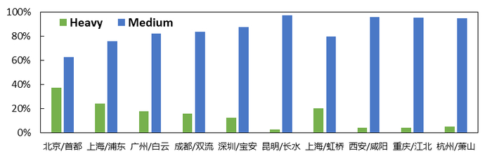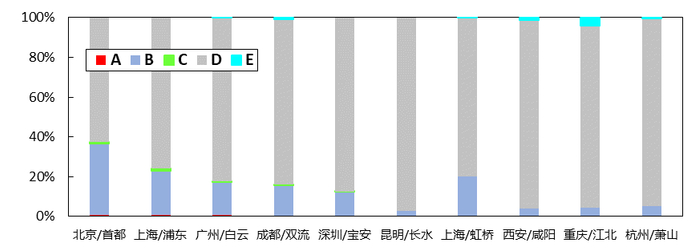 图2基于我国现行尾流分类标准(CAAC)的机场航空器分类统计情况