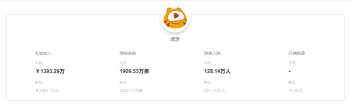 这点不仅是大公会们的共识,从小葫芦提供的直播平台打赏数据上也可得到验证。下图为斗鱼、虎牙在同一天的打赏收入对比。