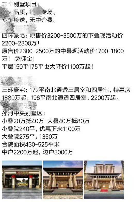 中国证券报(ID:xhszzb)记者了解到,该系房企目前在北京主推的多个叠拼洋房项目,降价幅度在数百万元到1000万元不等。同时,为了促进销售,该房企更是发动广大二手房中介进行销售,佣金比例高达5%,这吸引了大量中介“卖力”推销客户。