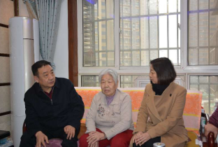 陕西省见义勇为协会蒲智慧部长(左一)赵丽红部长(右一)慰问周佩选家属。