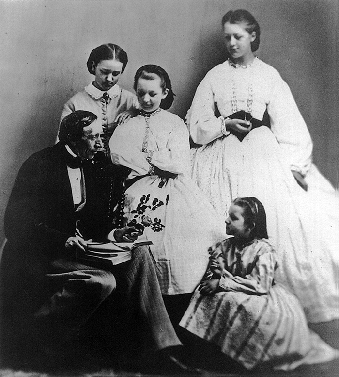 1860年前后,安徒生(1805-75)为年轻的女孩们朗读故事。图片来源:东方ic