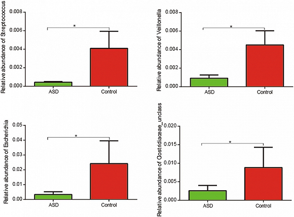 3)Scientific Reports:中国ASD患儿肠道微生物群分布2018年,Mengxiang Zhang团队发表于《Scientific Reports》上对35例ASD儿童和6例正常儿童的粪便检测显示,ASD组的粪便菌群与正常儿童相比: