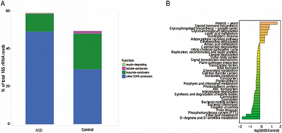 除梭菌外, 脱硫弧菌属(Desulfovibrio)和萨特菌属(Sutterella)也可能跟ASD相关。大约50%的ASD儿童肠道中可检测到脱硫弧菌, 超过50%的伴有胃肠功能障碍的ASD儿童肠道中存在萨特菌,而正常人中几乎没有。但目前萨特菌和脱硫弧菌影响ASD的机制仍然不明。