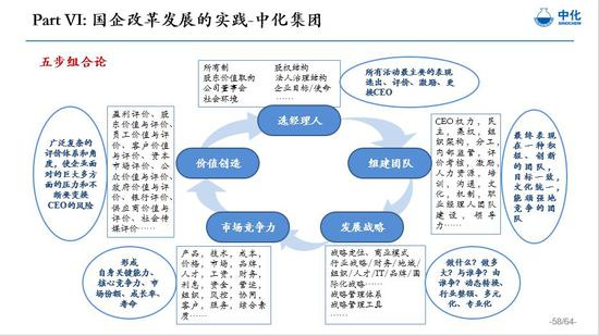 最后是五步组合论,我觉得这比较适合国有企业。第一步要选经理人。所有制不同、股东价值取向不同、社会环境不同、企业目标不同、使命不同……所有不同都会表现在选经理人上。所有活动最主要的表现就是选出、评价、激励、更换CEO。