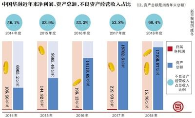 不过,华融新一届领导班子对赖小民时代的粗放扩张展开反思,多次公开表示,将聚焦不良资产经营主业。年报显示,其不良资产业务的占比均有所提高,不良资产收入总额占比、税前利润占比、资产总额占比分别较2017年攀升6.6%、159.2%、0.7%。