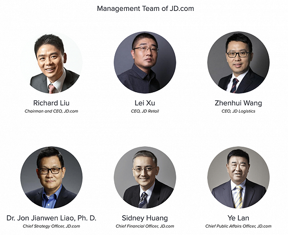 刘强东;京东商城CEO徐雷:老将,于2009年1月加入京东;京东物流CEO王振辉:老将,于2010年4月加入京东;CSO(首席战略官)廖建文:于2017年4月17日加入京东;CFO(首席财务官)黄宣德:洋务派、职业经理人之一。从2013年9月开始担任京东商城首席财务官;CCO(首席合规官)李娅云(仅剩的女高管):于2007年12月加入京东。CHO于睿:新人,京东第二届管理培训生。
