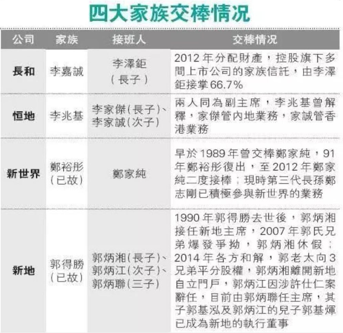 由此,李兆基创办的恒基与李嘉诚创办的长地、郑裕彤创办的新世界集团,以及郭氏家族的新鸿基,被外界并称为“香港四大家族”。