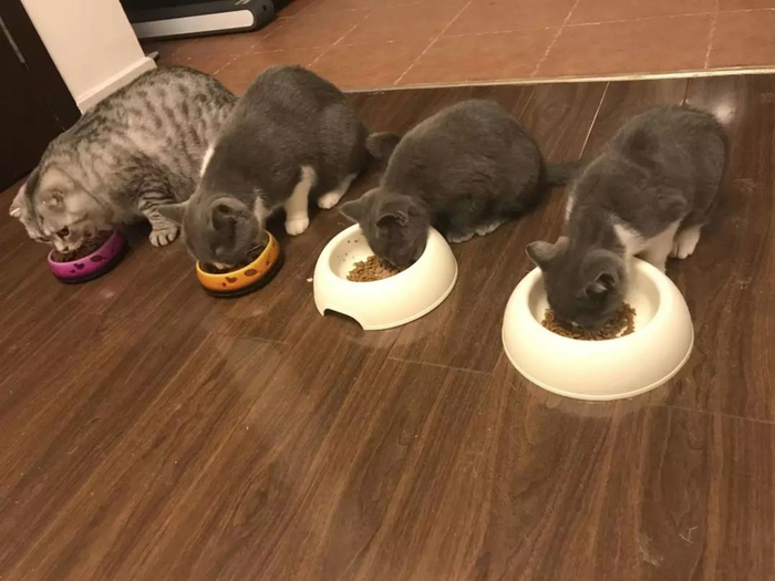 养了三四个月以后,五只猫实在是太闹腾了,已经影响到我的生活了,就含泪送出去了两只。