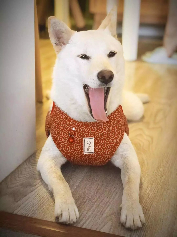 白菜身上的背带经常不是丢了就是咬坏了,到现在买过十几个。我自己从来不买保健品,觉得是骗人的,但是给白菜买了很多美毛的、补钙的保健品。我做饭的时候为了迁就白菜会不放盐,分给它一半。