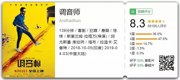 近些年,印度片已经成功摆脱早些年的“歌舞片”标签,在中国电影市场不仅票房、口碑双丰收,而且上映数量也在不断增多,《调音师》是今年的第一部在内地上映的印度电影。