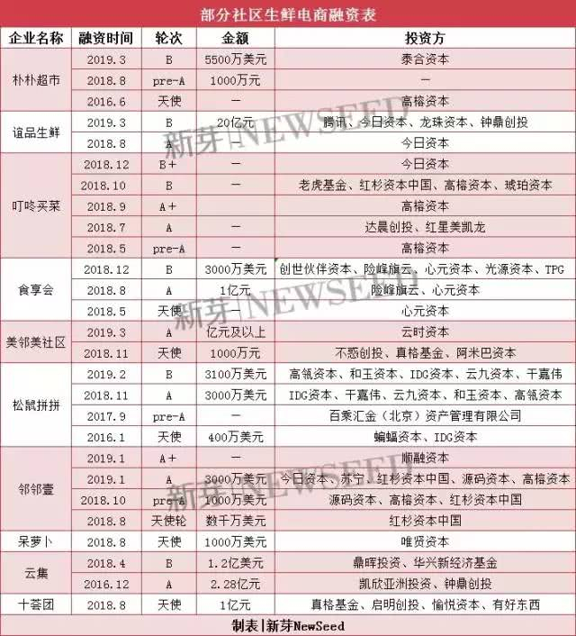 拼团类平台约有百家,但获得融资的却不多。但今年开年至今,大玩家都获得了巨头高额投资。新芽根据网络公开数据梳理了较为知名的生鲜拼团电商,融资总额超30亿元,20多家VC/PE入局。背后不乏红杉资本中国、IDG资本、今日资本、达晨创投、鼎晖投资等一线投资机构。