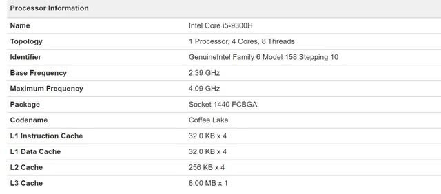 代号Coffee Lake的英特尔i5-9300H四核处理器