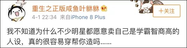 但因为本身能力不足,却为了营造一种“鄙视链上端的贵族感”,硬拗出符合“学霸”标签的形象,这也是为什么所谓的“人设”常常一言不合就崩塌。
