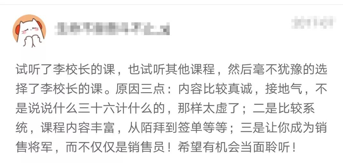 无论你是销售行业的老手,还是刚入行的新手,都能从李校长这里学习到系统的理念、丰富的知识、以及实战技巧。