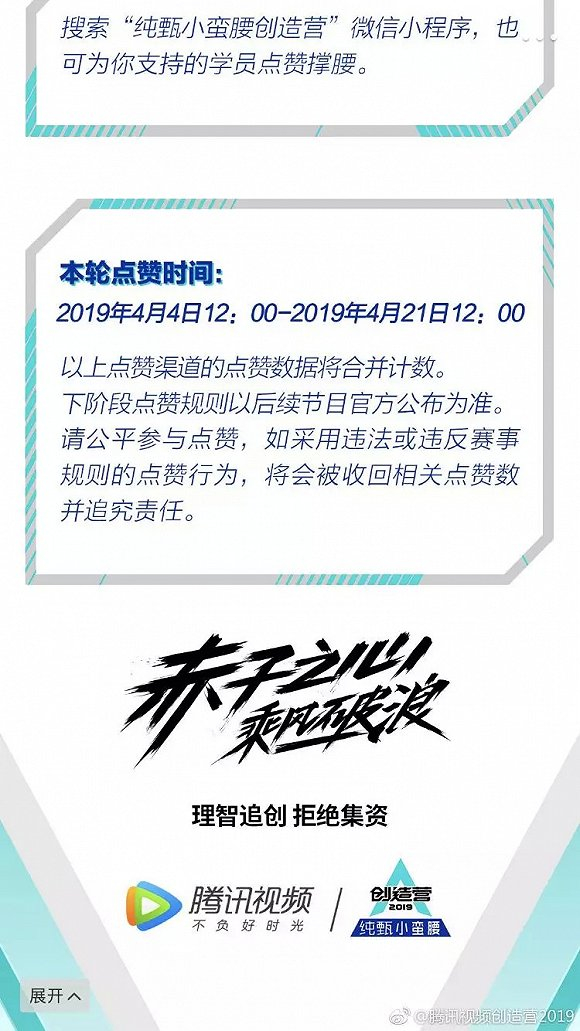 但目前还不能用“全军覆没”来形容偶像综艺市场,因为在《青春有你》收官当日,腾讯视频的《创造营2019》接连开播了,业内和大众都将偶像市场的希望,寄托在了这档节目上。