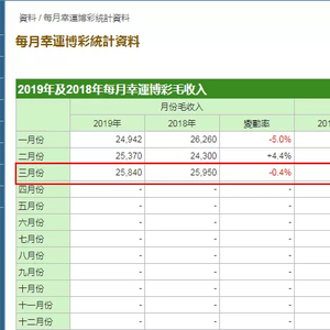 根据澳门特区博彩监察协调局公布的每月幸运博彩统计数据显示,截至2019年3月底,澳门幸运博彩毛收入为258.4亿澳门元,同比微跌0.4%,环比增长1.9%,前3个月澳门幸运博彩累计毛收入为761.52亿澳门元,同比微跌0.5%。