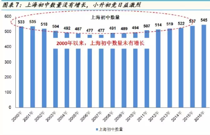 以上海市为例,上海市2000年出生人口为8.5万人,2016年出生人口是22万人,而学校数量没有明显的变化,虽然存在一些扩招的现象,但是“好学校”供不应求的现象,是与日加剧的。2000年出生的人,2012年会参与小升初,而2016年出生的人,2028年会参加小升初,也就意味着,2012年-2028年,上海小升初会变得一年比一年竞争激烈。