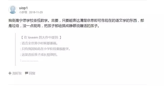 其他版友在讨论这个问题的时候,也是义愤填膺,有人说“不考数学,你的科技人才就跟不上,要玩完”,有人说“应该多考语言,各个国家基础教育都是很重视语言”的。