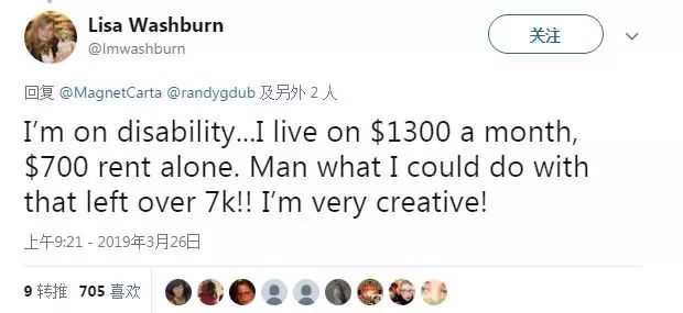 我是个残疾人士。我每月的总花费只有1300美元,且房租就要700美元。这对夫妻一年剩下的7千美元要是让我来花的话,我一定能花得充满创意!