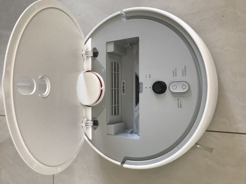 打开顶部机器盖,整机设有两颗实体按键,分别是电源键和Home键,用户可以通过两个按键进行开/关机操作、清扫操作以及回充操作。