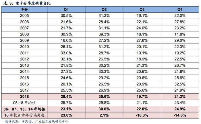 根据中汽协数据,19年2月份我国销售重卡7.8万辆,同比增长4.3%,1-2月累计销售17.7万辆,同比下降4.2%。根据第一商用车数据,19年2月份我国销售重卡14.4万辆,同比增长4%,19年1-3月份重卡销量同比累计仅下滑1%。考虑到18年1季度占全年销量比例高于正常年份23%带来的高基数影响,19年1季度剔除基数扰动后的增速或约20%。