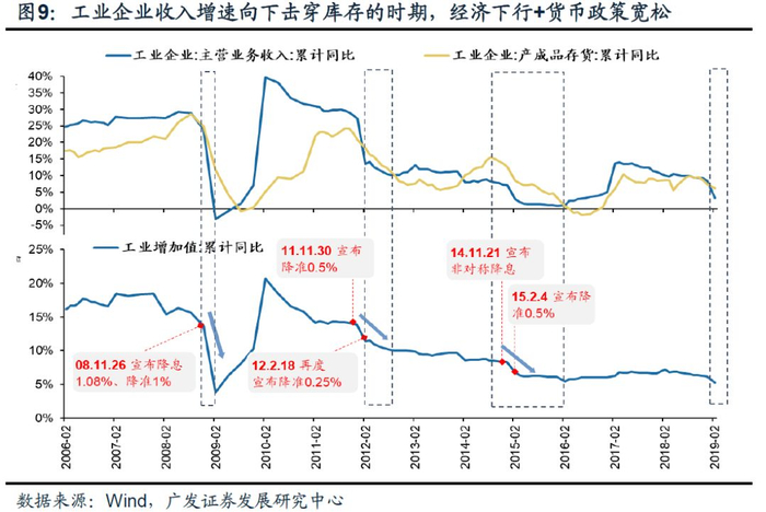 (1)08年11月出现收入下行击穿库存增速,11月26日、12月22日央行两度宣布“双降”;