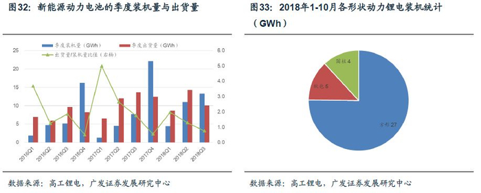 6.1 锂电设备:进入2.0时代据高工锂电数据,2018年前3季度,新能源动力电池出货量为33GWh,装机量为29GWh。我们汇总6家电池企业,2018年3季度末的存货合计为81.5亿元,同比增长33%,为这两年来最低的增速水平。结合出货量/装机量比值的降低,显示电池企业正在出清低能量密度的电池库存,其排产状况趋于理性健康。