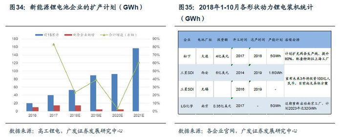松下、LG、三星等日韩电池企业近年来陆续在中国建立电池工厂,LG、三星在中国建设的电池工厂已经投入阶段性运营,而松下在大连投资的电池工厂也将完成建设。目前LG已经进行了南京栖霞工厂9/10号线的招标,2019年3月预计启动11-14号线招标。三星没有公布具体扩产方案,但已宣布未来将投资100亿用于产能建设。
