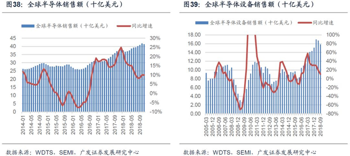 前3季度全球半导体设备销售额496亿美元,同比增长19.4%;SEMI预测2018年全年设备销售额同比增长9.7%,并预计2019-2020年全球半导体设备销售额分别同比变动-4.0%、+20.7%。