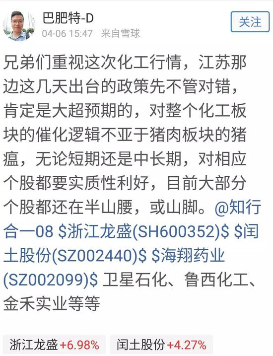 放假这3天,化工股已在朋友圈“涨停”。原因是江苏盐城4月4日召开市委常委会议指出,以壮士断腕的意志和决心,彻底关闭响水化工园区。