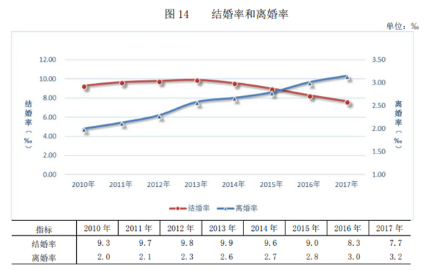 其中,离结比(一定时期内离婚对数与结婚对数之比)高达38%。这意味着:在100对夫妻登记结婚时,就有38对夫妻登记离婚。