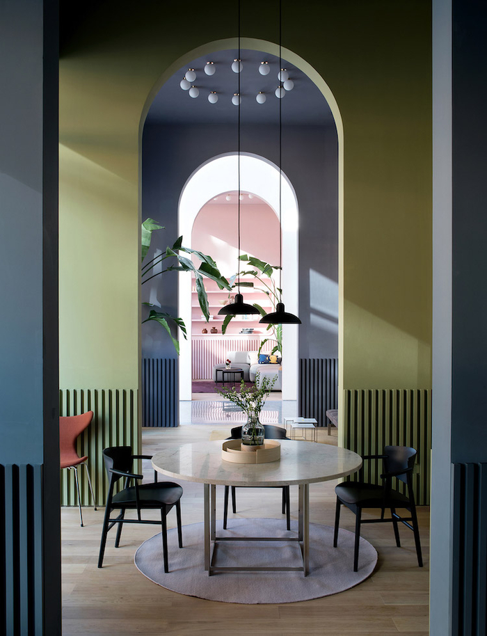 家具则以场景化的方式,分别在 14 个不同风格、不同功能的小房间里进行陈列,让顾客可以以更具私密性的方式感受 Fritz Hansen 不同系列的魅力。