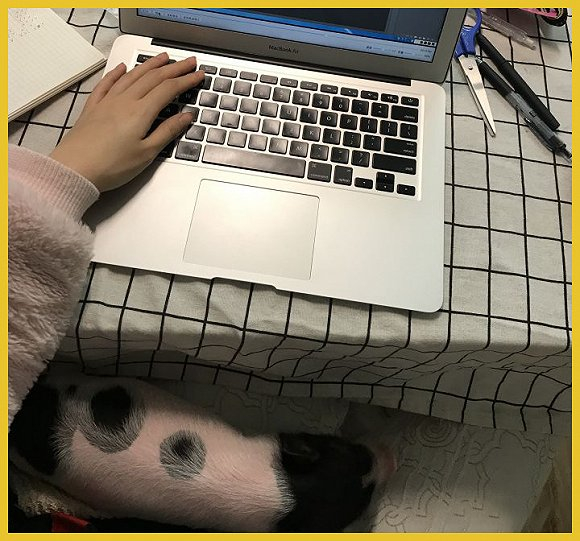 你办公的时候,就乖乖躺你腿上陪着你。▼