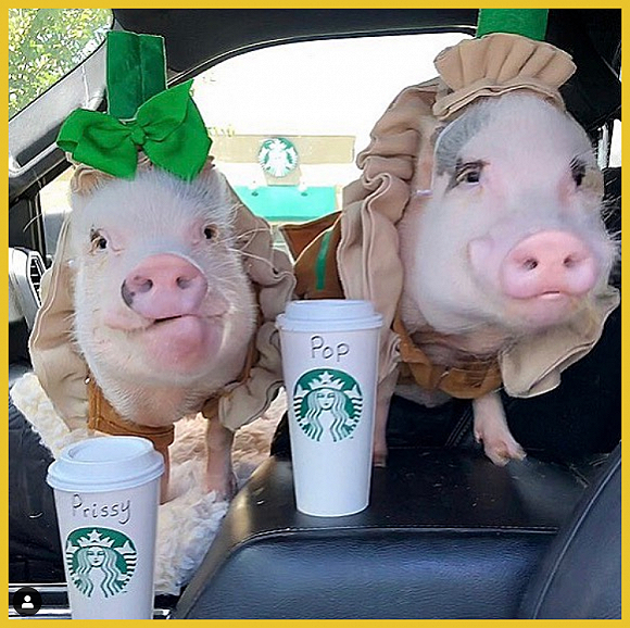 家住美国的Priscilla和Poppleton,猪届时尚达人,一天一套衣服不带重样的。▼