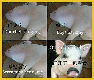 宠物猪不仅会认主人,还可以学会一些简单的口令。