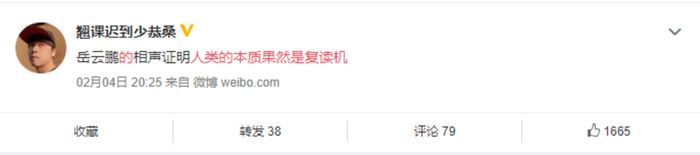 今年春晚,岳云鹏和孙越带来的相声节目让人有些失望,可能是为了求稳,两人在台上说的笑料,有不少都是以前用过的梗。微博上,大V们都不约而同用了同一句话来吐槽。