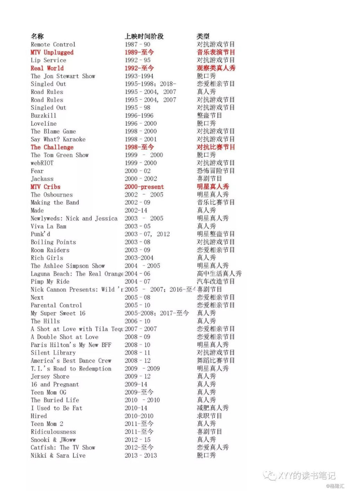 下面图为我们整理1980年代以来MTV上线综艺节目粗略信息