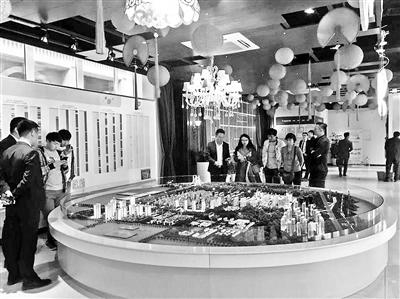 4月6日上午,北青报记者来到潮白大街边上的上述楼盘的售楼处,门前的停车场已满,停车场里的车牌超过半数显示来自北京,其次是河北、天津、江苏等地。进入售楼处,近百平方米的面积大厅站了好几拨看房客,他们围着沙盘,销售经理们正在给他们逐一讲解。