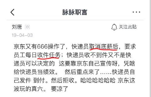 刘强东食言了。随着“京东取消快递员底薪”的动作传开,京东快递员的好日子似乎也已到头。