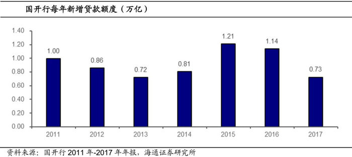 当前国开行资本充足率按照10.5%的要求监管。由于2018年国开行年报尚未公布,我们根据2017年的数据进行估算。在最乐观情形下,假设其19年资本充足率放松至10.5%,资本总额增速8%。根据2017年年报,国开行资本充足率为11.57%,其资本总额约为1.47万亿,大致估算出2019年新增贷款额度约为1.5万亿-1.8万亿,但实际情况可能低于上述估算。