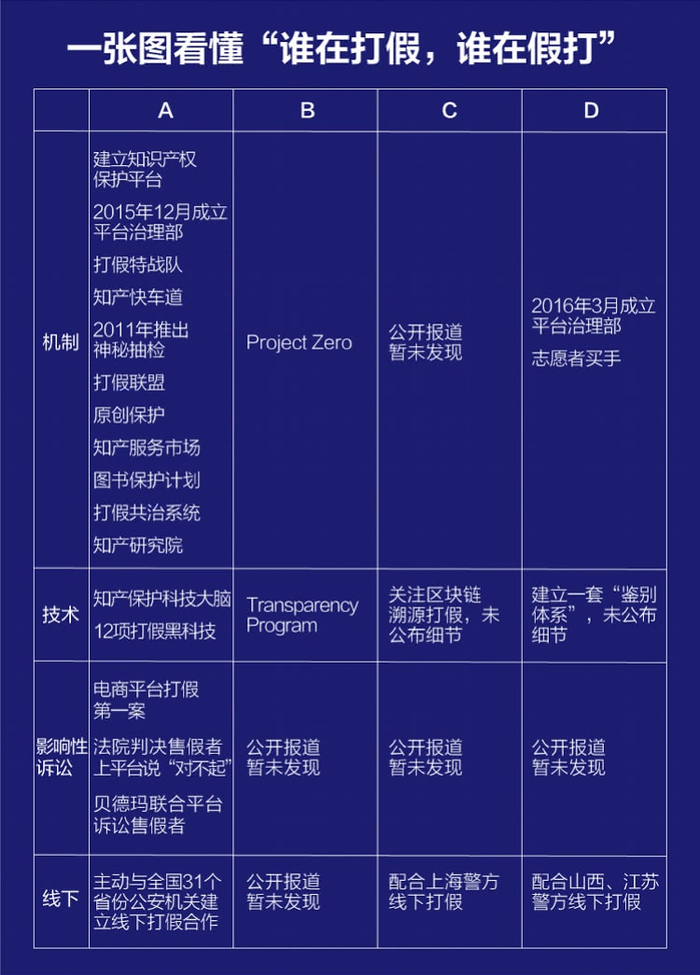 本文以公开报道等资料为依据,从顶层制度设计、打假技术使用、线上防控、铲除线下假货源头的力度、法治推进等多个维度,对多家电商的假货治理方式进行了对比,发现有的平台是真动手打假,有的似乎不是这样。