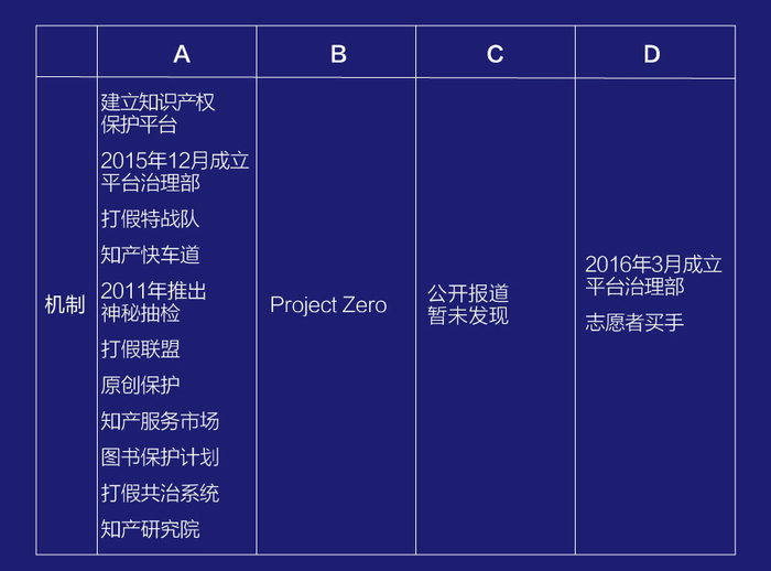 平台A专门成立了知识产权研究院,并每年向社会公开公布知识产权保护趋势、实况。