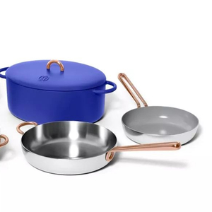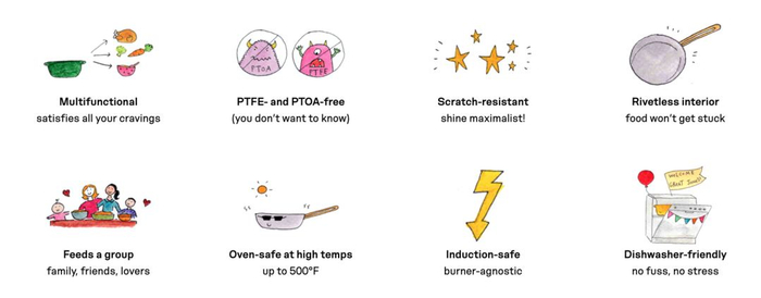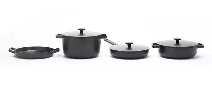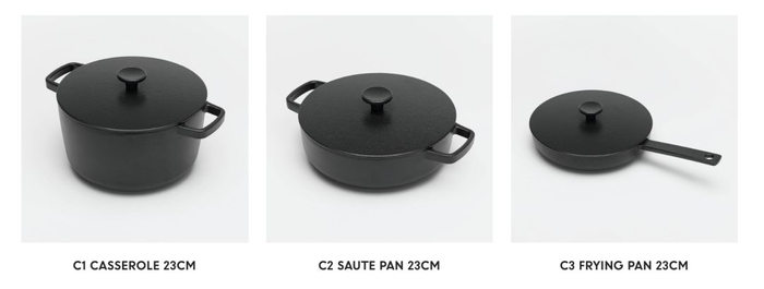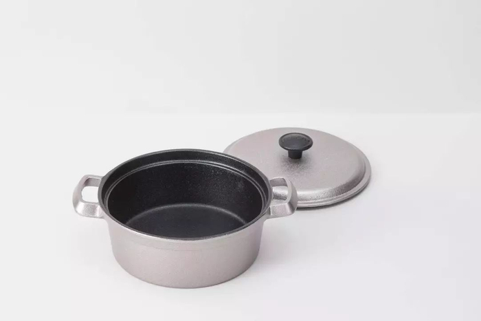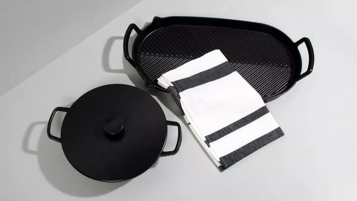 总部位于美国加州的 Milo 与Great Jones 一样是一家初创企业,创始人和他们的投资人一样,看好厨具市场,想要给用户提供价格公道,但质量却足够作为传家宝的产品。Milo 的产品设计隽永简洁,目前只有黑白两个颜色,款式也只有圆形炖锅和煎盘两种,直带盖圆形铸铁锅售价仅75美元,可谓非常实惠。